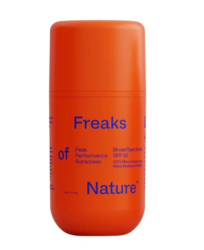 Freaks of Nature Peak Performance Sun Stick SPF50: Kelly Slater’s company might know something about natural sunscreen. This product “goes on smooth and easily with a bare skin feel that won't warp, slip or drip into your eyes. Packed with microbiome-strengthening ingredients, it helps fortify your skin/s barrier — leaving it calmer, healthier, and more resilient against environmental stressors.”